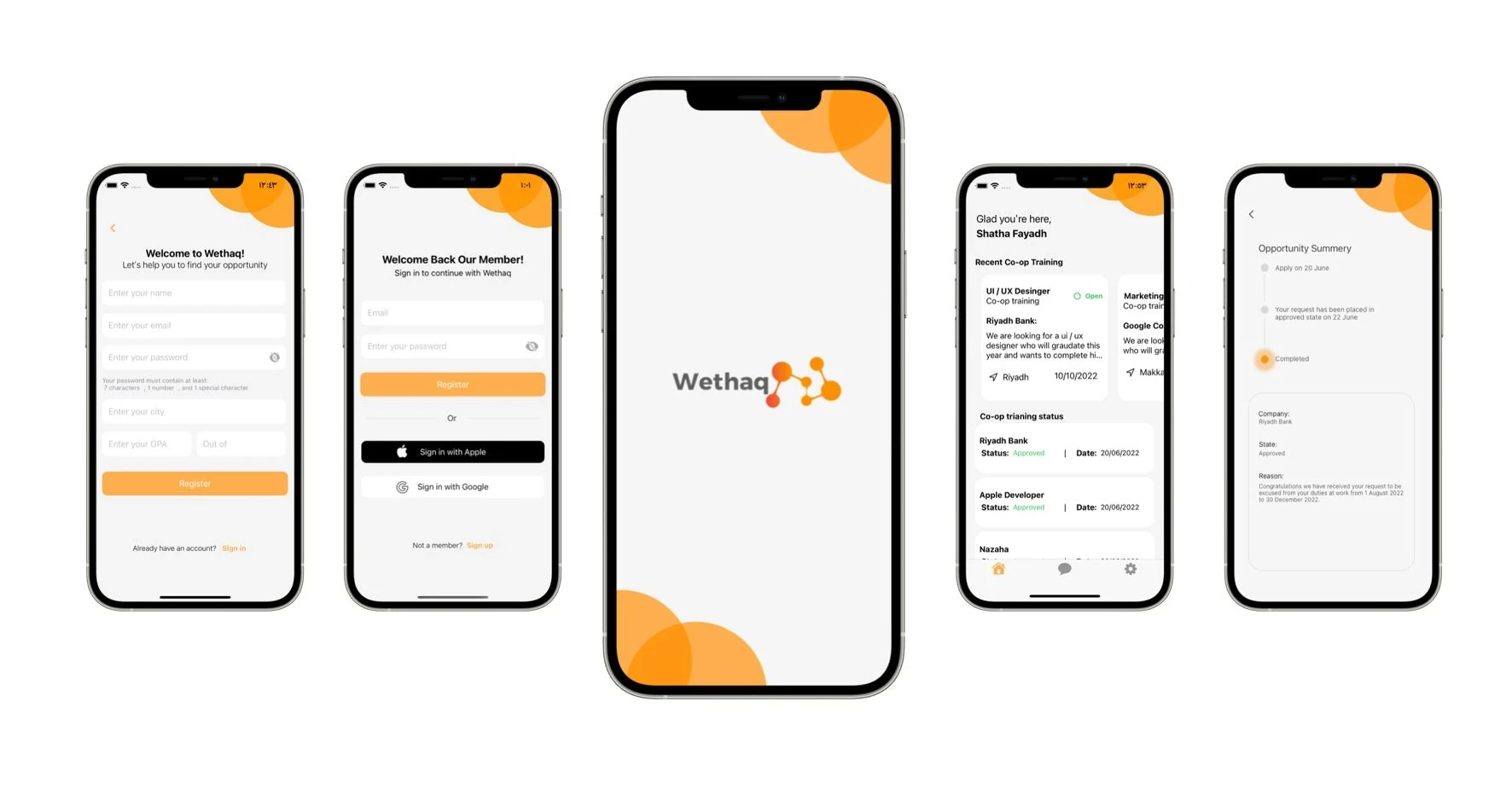 Wethaq is an application that connects students with companies that provide COOP training to facilitate the process between them. I completed my application as design and coding by using SwiftUI for the front end and Firebase for the back end.